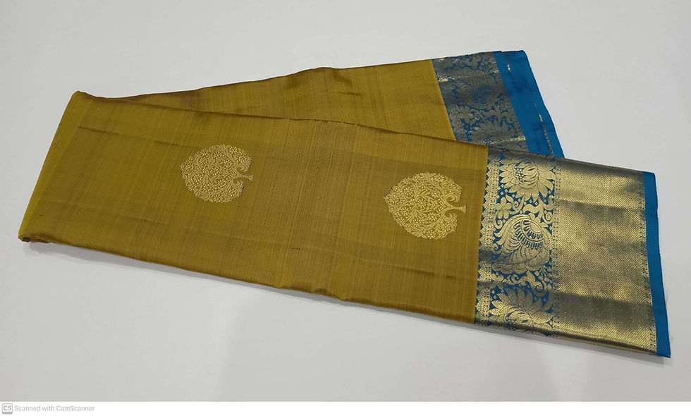 Peacock blue colour with Vasantha green colour kanchipuram pure silk saree